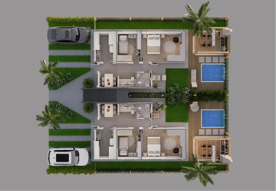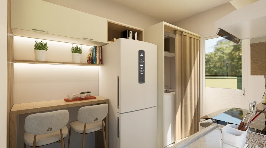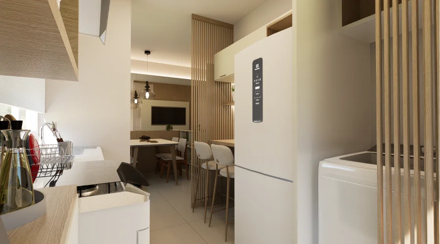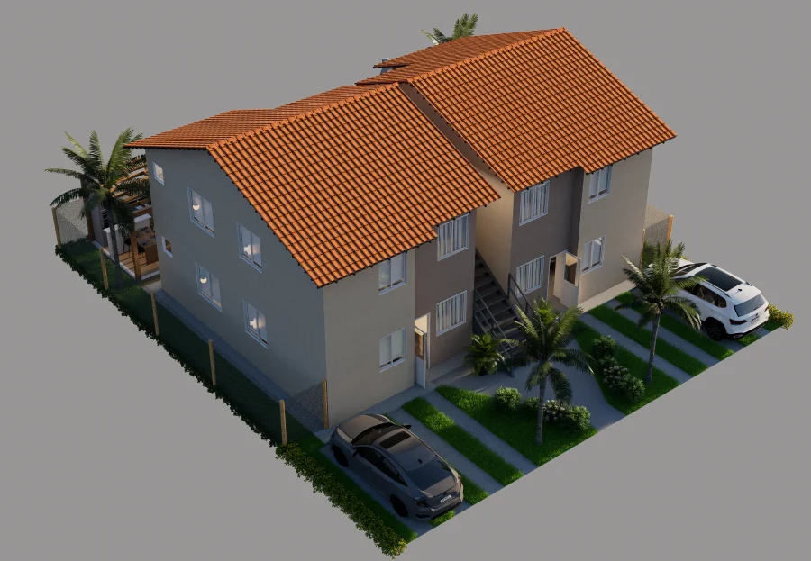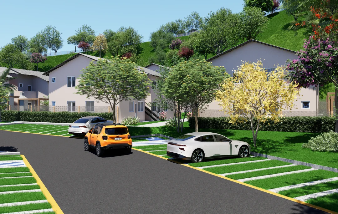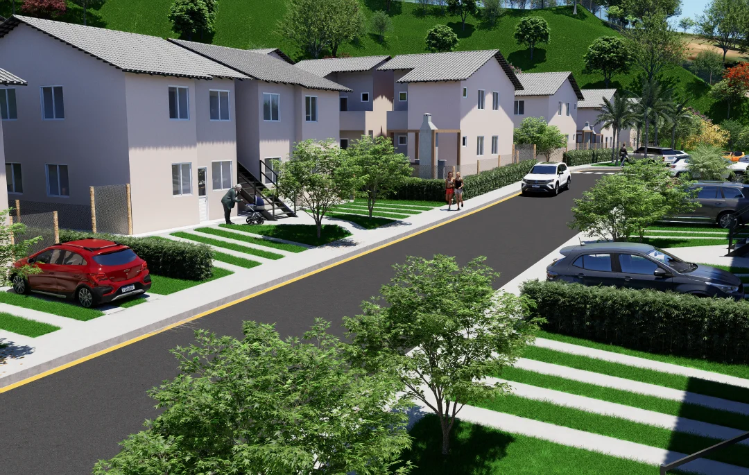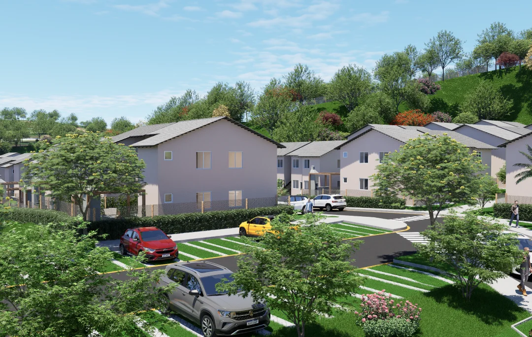 Com gradis de cerca viva entre as residências, você tem ainda mais tranquilidade. A cozinha e os banheiros são revestidos com azulejos até o teto e contam com torneiras em aço inox, garantindo um acabamento sofisticado e de alta durabilidade.